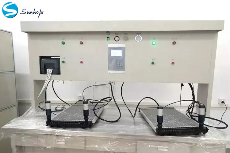 This dry-type radiator leak testing machine is specifically engineered for inspecting the air tightness of automobile radiator cores. It ensures reliable and accurate leak detection in a production environment.